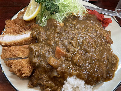 とんかつ赤城のカツカレー コスパ外食 2023.03.23 とんかつ赤城のカツカレー 赤城の盛りは基本大盛りです。定食ではご飯とキャベツが追加可能ですが。カレーはできません。でももともと大盛りですので私はお代りできる力がないので、これで十分満足です。 価格は1050円(税込み)